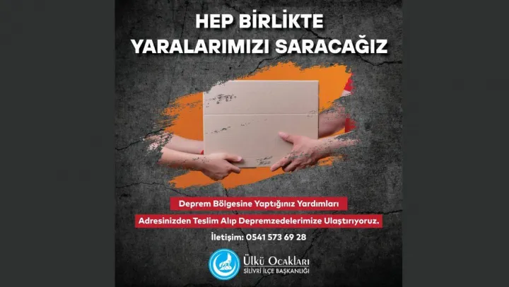 “Hep birlikte yaralarımızı saracağız” mesajını veren Silivri Ülkü Ocakları “Deprem bölgesine yapacağınız tüm yardımları adresinizden teslim alıp depremzedelerimize ulaştırılıyoruz” açıklamasında bulundu.