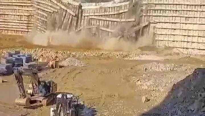 Ümraniye'de bir inşaat alanında yapılan çalışmalar sırasında istinat duvarının yıkılması sonucu yolda çökme meydana geldi. Korku dolu anlar bir vatandaşın cep telefonu kamerasına yansıdı.