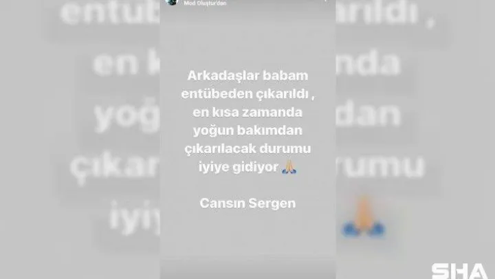 Kısa süre önce evinde fenalaşan ünlü oyuncu Burak Sergen hastaneye kaldırılmıştı. Korona virüse yakalandığı ortaya çıkan ve durumunun ağırlaşması üzerine entübe edilen ünlü oyuncu Burak Sergen'den iyi haber geldi. Babasının ardından korona virüse yakalanan ve kısa sürede sağlığına kavuşan Cansın Sergen, babasının sağlık durumuyla ilgili açıklama yaptı. Güzel haberi yaptığı paylaşımla duyuran Cansın Sergen, 'Arkadaşlar babam entübeden çıkarıldı. En kısa zamanda yoğun bakımdan çıkarılacak. Durumu iyiye gidiyor' dedi.