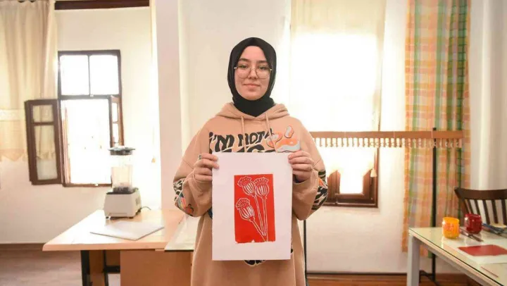 Geleneksel baskı sanatı linol baskının en güzel örnekleri, Ankara Kalesi'ndeki Altındağ Belediyesi Kültür ve Sanat Evi'nde ortaya çıkıyor.