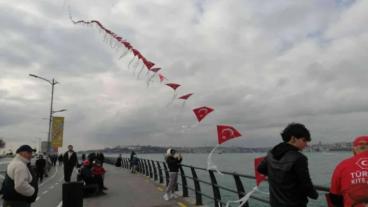 İstanbul Uçurtmacılar Derneği Başkanı Mehmet Naci Aköz, 'Bugün 14 Ocak Dünya Uçurtma Uçurma Günü. İlk kez 1989 senesinde Hindistan'da başladı ama bu etkinlik daha sonra tüm dünyaya yayıldı. Geçen sene de bu etkinliği yapmıştık ama basına haber vermemiştik. Uçurtma bizim sokak oyunları kültürümüzün en önemli oyuncaklarından biri. Oyuncak diyorum ama uçurtmanın tarihine baktığımızda bambaşka bir tarih var. Kültür var; teknoloji, sanat, savaşlar, spor, inançlar gibi bir sürü iç içe girmiş olay görüyorsunuz. Ama bizim kültürümüzde çok sevimi bir oyuncak olarak biliyoruz. Bugün 150 Türk bayrağını peş peşe bağladık. 225 metre uzunluğunda, gökyüzüne havalandırdık. Rüzgar biraz ters geldi. Biraz daha sola dönseydi şu an bu uçurtmalar Sarayburnu'ndaydı' dedi.