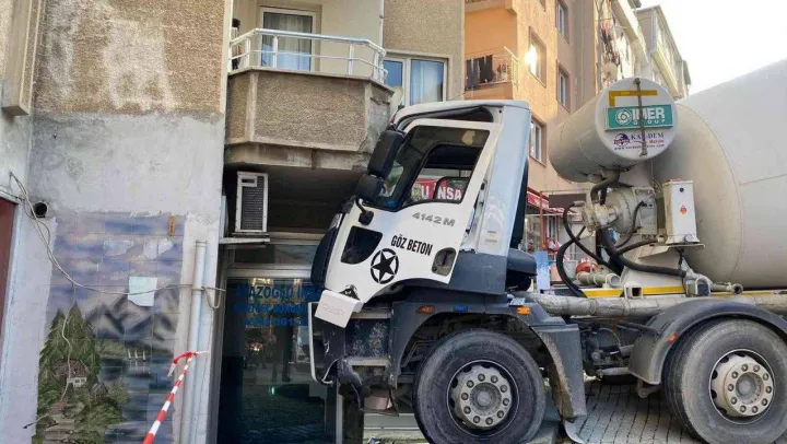 Üsküdar'da şoförün aşağı inerken imdat frenini çekmeyi unuttuğu beton mikseri, yokuş aşağı kayarak binaya çarptı. Kazada beton mikserinin şoförü hafif şekilde yaralandı. Kaza anı güvenlik kamerasına yansıdı.