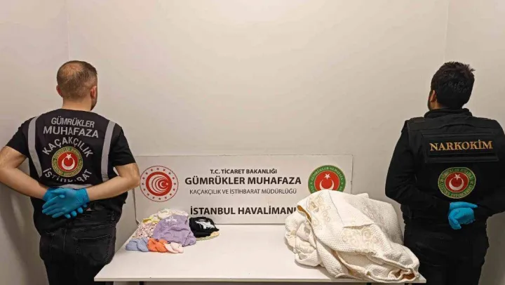 İstanbul Havalimanı'nda bebek kıyafetlerine emdirilmiş vaziyette 14 kilo 900 gram uyuşturucu ele geçirildi.