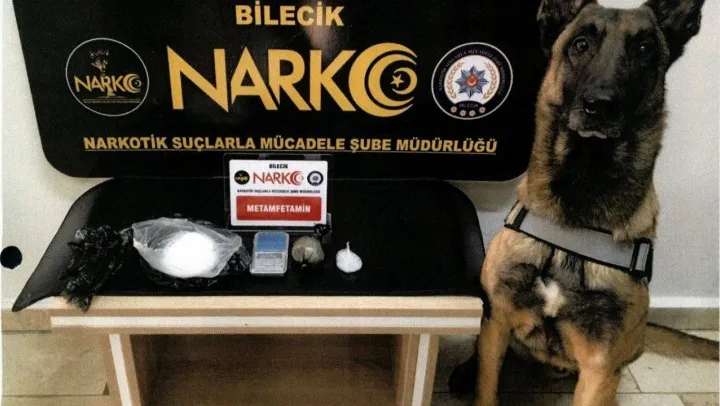 Bilecik'te düzenlenen operasyonunda 145,29 gram metamfetamin maddesi ele geçirilirken, uyuşturucuyu narkotik madde arama dedektör köpeği buldu