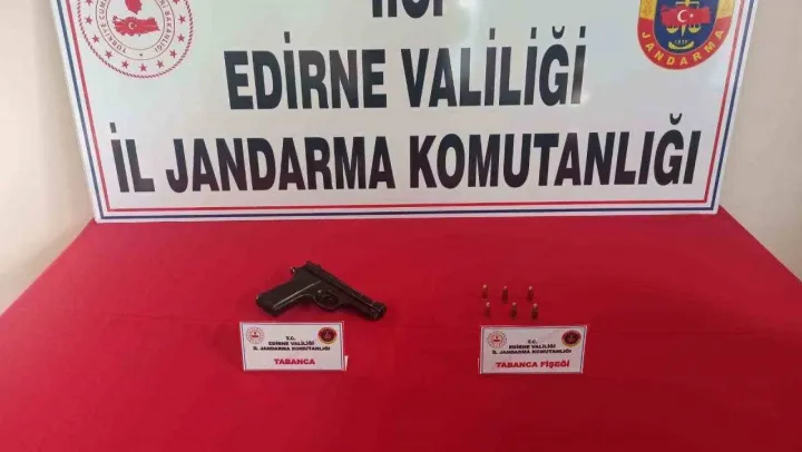 Edirne'nin Keşan ilçesinde jandarma ekipleri tarafından yapılan denetimlerde bir kişinin üst aramasında 1 adet tabanca ve 6 adet fişek ele geçirilirken, şüpheli gözaltına alındı.
