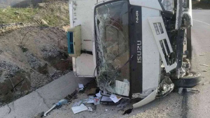 Virajı alamayan kamyonet devrildi, 2 kişi yaralandı