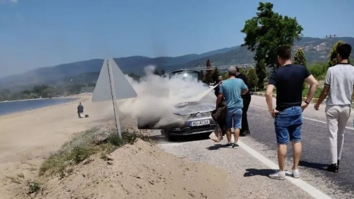 Edinilen bilgiye göre, Erdek'e tatile gelen yabancı plakalı bir ailenin aracı seyir halindeyken henüz belirlenemeyen bir sebeple alev aldı. Yangını fark eden vatandaşlar durumu itfaiyeye bildirirken, çevredeki sürücüler araçlarında bulunan yangın söndürme tüpleriyle alevlere müdahale etti. Yoğun çaba sonucu yangın kontrol altına alınırken, araçta büyük çapta maddi hasar oluştu. Yangında yaralanan olmazken, HU AC 68 plakalı araç kullanılamaz hale geldi.