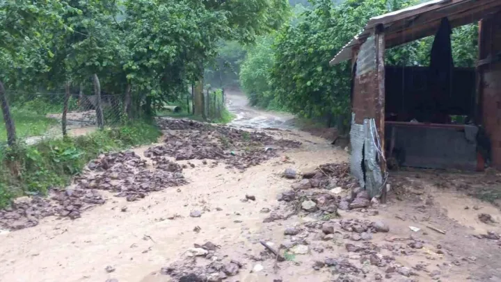 Yağış sonrası mahalle yolu ulaşıma kapandı