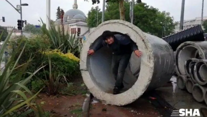 İstanbul'da etkili olan sağanak yağış ilginç manzaralar oluşturdu. Beşiktaş'ya yağmurdan kaçmaya çalışan vatandaşlar, bulabildikleri yerlere sığınmaya çalıştı. Bu sırada bir vatandaşın su künkünün içerisine girerek yağmurdan korunmaya çalışması ilginç görüntüler oluşturdu. O anlar cep telefonu kameralarına yansıdı.