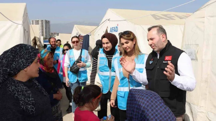 Kadın ve Aile Hizmetleri Müdürlüğü personeli ile Hatay'a giden Başkan Vekili Tutuk'a eşi Gökşen Tutuk, Başkan Yardımcısı Ahmet Sarıduman, Kültür ve Sosyal İşler Müdürü Candan Yılmaz ile AK Parti Kadın Kolları İl Başkanı Selihan Dicle Şimşek de eşlik etti. Antakya'da çadır kentte afetzedelerle bir araya gelen Tutuk ve eşi Gökşen Tutuk, Yalova'da kendilerinin de yıllar önce aynı acıları yaşadığını söyledi. 'Bunun üstesinden hep birlikte el birliğiyle kalkacağız' diyen Tutuk, Yalova Belediyesi'nin tüm imkanlarıyla sahada olduğunu belirtti. Çadır kentteki vatandaşlarla tek tek ilgilenen Tutuk çifti, afetzede çocuklara ve vatandaşlara çeşitli hediyeler verdi.