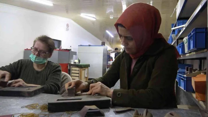 Yalova'da engellilerin istihdamı için açılan kursa 12 özel birey ahşap tabanca kabzesi üretimini öğreniyor.