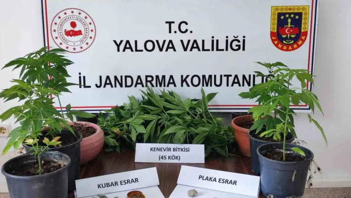 Yalova İl Jandarma Alay Komutanlığı Kaçakçılık ve Organize Suçlarla Mücadele Şube Müdürlüğü ekipleri Çınarcık ilçesi Teşvikiye beldesindeki bir apartman dairesine operasyon düzenlendi. A.M'nin evinde yapılan aramadan 45 kök kenevir bitkisi, 7 gram plaka esrar ve 38 gram kubar esrarla yakalandı.