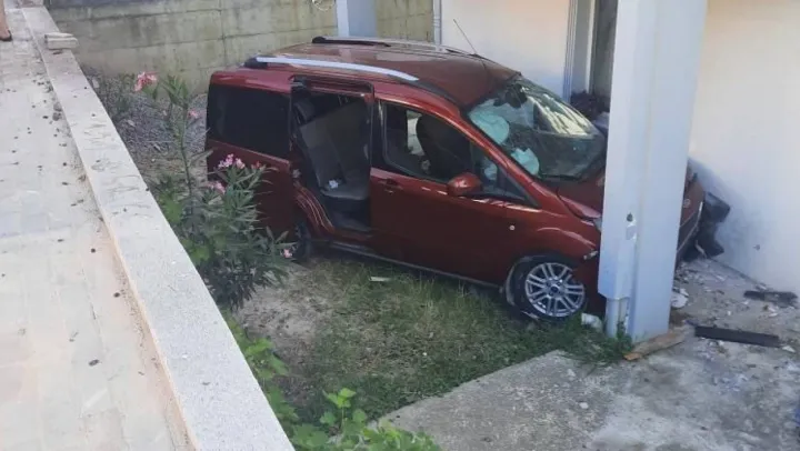 Yalova'nın Çiftlikköy ilçesinde kontrolden çıkan kamyonet, yaklaşık 2 metre yükseklikten düştüğü bahçedeki binaya çarptı.
