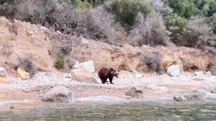 Yalova'da kıyı balıkçılığı yapan bir kişi, teknesiyle denize açıldı. Kapaklı köyü sahilinde ilerleyen vatandaş, burada bir ayının gezindiğini fark etti. Hemen cep telefonuna sarılan şahıs, ayının görüntülerini cep telefonuyla kaydetmeye başladı. Ayı vatandaşı fark edince bölgeden koşarak kaçtı. Sandalla ayının yakınına kadar ilerleyerek burada yeniden ayıyı görüntülemeyi başardı.