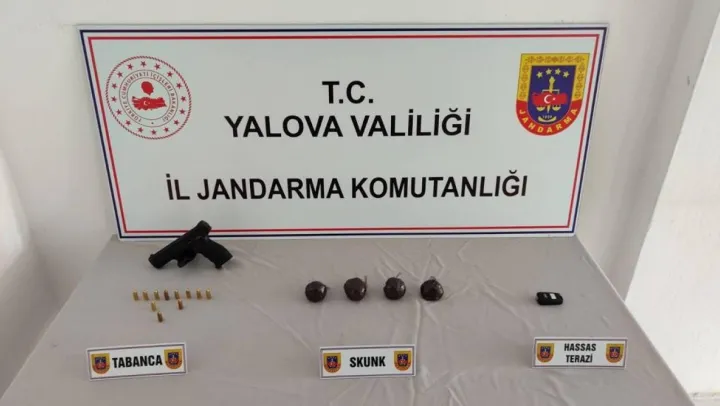 Alınan bilgiye göre, İl Jandarma Komutanlığı İstihbarat Şube Müdürlüğü ekiplerince sürdürülen çalışmalar neticesinde Ö.Ş. isimli şahsın evinde ve işyerinde uyuşturucu madde bulundurduğu bilgisine ulaşıldı. Şahısın Altınova ilçesi Tavşanlı beldesinde bulunan evinde ve Çiftlikköy ilçesi Sahil Mahallesi'nde bulunan iş yerinde eş zamanlı olarak yapılan aramalarda, ruhsatsız tabanca, şarjörü ve 11 adet merminin yanı sıra satışa hazır 10'ar gram halinde paketlenmiş toplam 40 gram skunk ve hassas terazi ele geçirildi.
