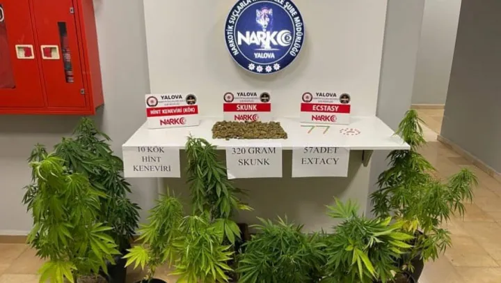 Yalova'da düzenlenen uyuşturucu operasyonunda 1 kişi tutuklanırken bin 234 uyuşturucu hap, 320 gram skunk ve 9 kök Hint keneviri ele geçirildi.