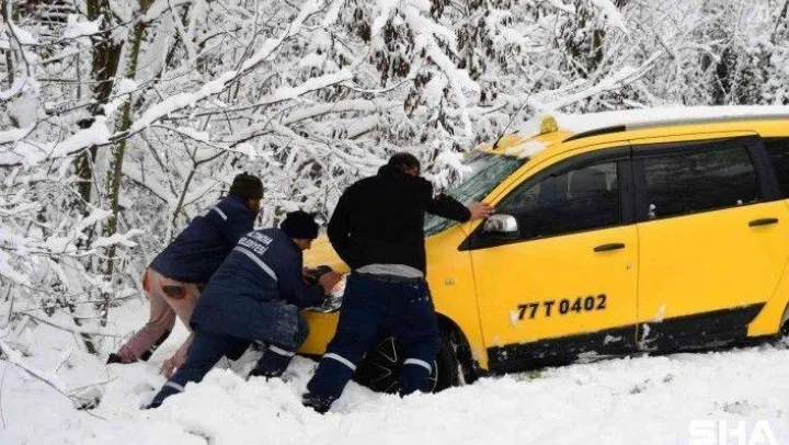Yalova'da kar sebebiyle araçlar yoldan çıktı