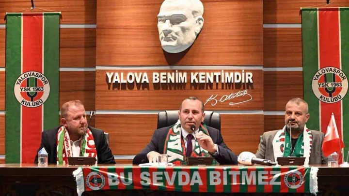 Yalovaspor'un adıyla ve kendi renkleriyle devam edeceğini belirten Yalova Belediye Başkanı Mustafa Tutuk,'Yalovaspor Kulübü Başkanı Hakan Suiçmez'in mücadelesine şahidim. Yalovaspor'un daha iyi yerlere gelmesi için tüm tecrübesiyle mücadele etti ve mücadele etmeye de devam ediyor. Takımımızın daha iyi yerlerde olması için Yalova Belediyesi'nin biraz daha destek vermesi lazım. Yalova Belediyesinin daha fazla destek vermesi için yasal prosedürlerini yerine getirmemiz gerekiyordu. Yapmış olduğumuz görüşmeler neticesinde bir karara vardık. Yalova Belediyesi olarak biz sadece yüklenici olacağız. Yalovaspor'un adı aynı kalacak. Renkleriyle, adıyla şehrimizin Milli Takımı olarak yoluna devam edecek. Hakan başkanımızla, bu takıma gönül vermiş eski başkanlarımızın, yöneticilerimizin destekleriyle ve özellikle gençlerimizle Yalovaspor'u hak ettiği yere getireceğiz' dedi.