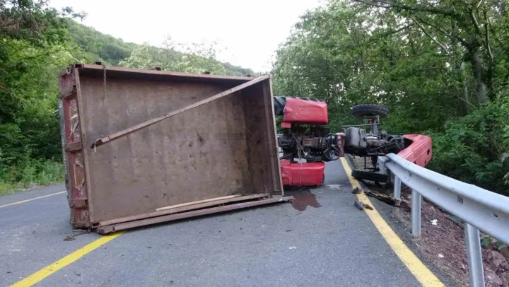 Kocaeli'nin Kartepe ilçesinde sürücünün direksiyon hakimiyetini kaybettiği traktör yan yattı. Traktörün altında kalan ve ağır yaralanan sürücü, itfaiye ekipleri tarafından çıkarılarak hastaneye kaldırıldı.