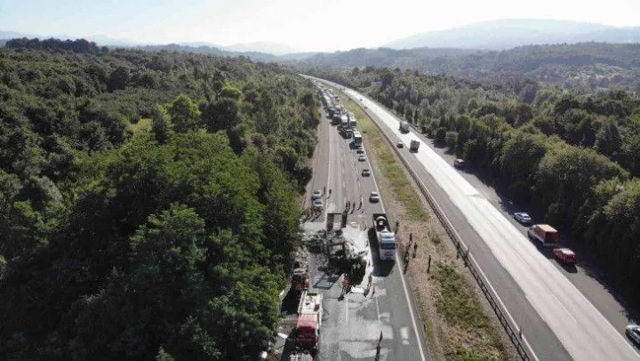 Kaza sebebiyle İstanbul istikametinde trafik durma noktasına geldi. Ekiplerin müdahalesiyle kontrol altına alınan yangının ardından polis ve jandarma ekipleri uzun araç kuyruklarının oluştuğu bölgede trafiği kontrollü şekilde tek şerit üzerinden sağlıyor. Hayatını kaybeden tır sürücüsünün cansız bedeni ise ekiplerin yaklaşık 2 saat süren zorlu çalışması neticesinde bulunduğu yerden çıkarıldı. Meydana gelen kaza sonrasında İstanbul istikametinde oluşan uzun araç kuyrukları ve kazanın dehşeti havadan da görüntülendi.