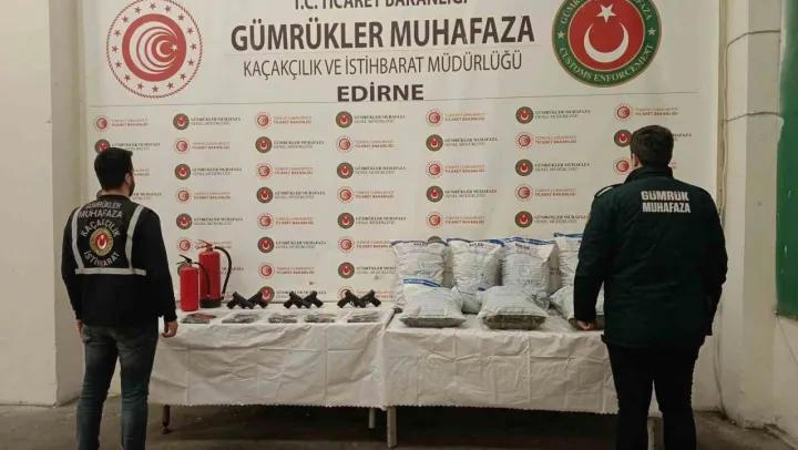 Edirne Kapıkule Sınır Kapısı'nda düzenlenen operasyonlarda, yangın tüpüne ve tırın çeşitli yerlerine gizlenmiş tabanca ve mermi ele geçirildi.