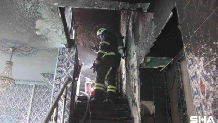 Kocaeli'nin İzmit ilçesinde cami içerisinde bulunan elektrik trafosundan çıkan yangın neticesinde cami büyük hasar gördü.