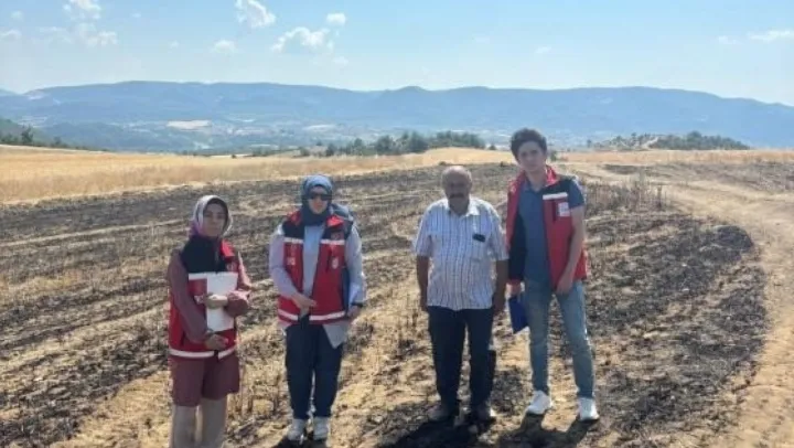 Bilecik'in Osmaneli ilçesine bağlı Büyükyenice Köyü'nde tarım arazisinde çıkan yangının ardından, Aile ve Sosyal Hizmetler İl Müdürlüğü ekipleri bölgede incelemelerde bulundu.