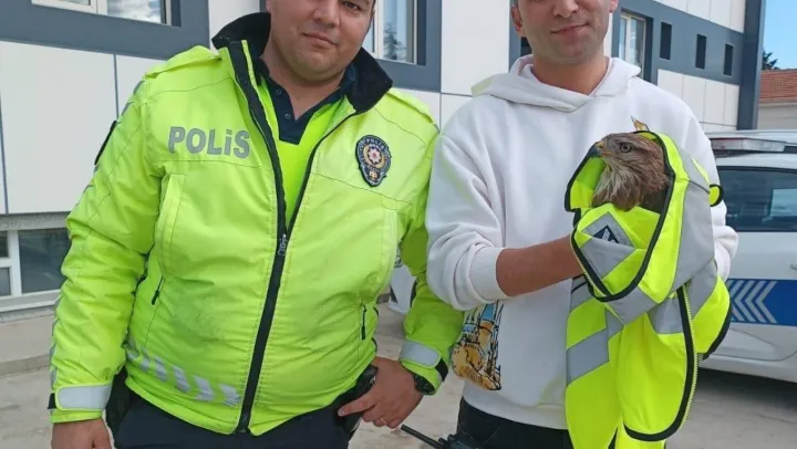 Edirne'de polis ekiplerince yolda yaralı halde bulunan atmaca koruma altına alındı.
