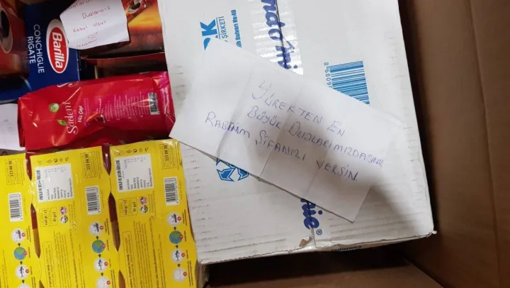 Kahramanmaraş merkezli depremler tüm Türkiye'yi yasa boğarken, İstanbul Kartal'da toplanan yardım kolilerin içinden çıkan notlar duygulandırdı.