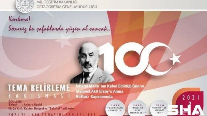 Milli Eğitim Bakanlığı Ortaöğretim Genel Müdürlüğü tarafından düzenlenen İstiklal Marşının Kabulü ve Mehmet Akif Ersoy'u Anma Günü Tema Belirleme Yarışması başvuruları başladı. Yarışmaya başvurular 02 Ekim 2020 tarihinde sona erecek.