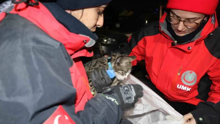 Nurdağı'nda enkaz bölgesinde arama kurtarma çalışmaları tüm hızıyla sürerken, inanması zor bir hadise yaşandı. Ekiplerin çalışma yürüttüğü sırada kaldırılan beton blokların altındaki boşluktan, saatlerce mahsur kalan yavru kedi çıktı. Yaklaşık 45 saat sonra enkazdan canlı çıkan ve boynunda tasması bulunan ev kedisine UMKE ekipleri hemen yardım eli uzattı. Kediye su içirip karnını doyuran ekipler, daha sonra ısınması için araçlarına aldılar. Yavru kediyi UMKE ekibi sahiplendi.