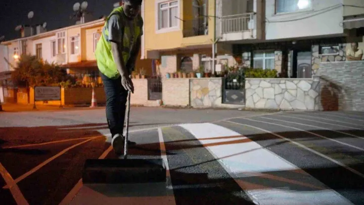 Kocaeli Büyükşehir Belediyesi, şehir içi trafiğini ve güvenliğini rahatlatmak için çalışmalarını sürdürüyor. Ulaşım Dairesi Başkanlığı Trafik Hizmetleri Şube Müdürlüğü'nce trafik yaya güvenliği için asfalt ve hız kesici kasisler yapılıyor. Yapılan asfalt hız kesici kasislerin görünürlüğünü arttırmak amacıyla çift kompenantlı boya ile asfalt hız kesici kasis üzerine tarama çalışması yapılıyor. Boyanın görünürlüğünü arttırmak için cam kürecikleri eklenen çalışmayla özellikle gece araç sürüşlerinde boyanın görünürlüğü arttırılıyor. Ayrıca asfalt ile yapılan hız kesici kasislerin görünürlüğü uyarıcı levhalarla güçlendiriliyor.
