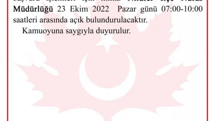Bursa Valiliği'nden yapılan açıklamada, '2022 Yılı Yabancı Dil Seviye Tespit Sınavına (2022-YDS/2) katılacak adayların, T.C. kimlik kartı başvuru işlemleri için ilimiz Nilüfer İlçe Nüfus Müdürlüğü 23 Ekim 2022 Pazar günü 07:00-10:00 saatleri arasında açık bulundurulacaktır. Kamuoyuna saygıyla duyurulur' ifadelerine yer verildi.