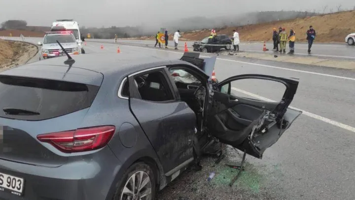 Bursa'da iki otomobilin kafa kafaya çarpıştığı kazada 1 kişi hayatını kaybetti, 3 kişi yaralandı.