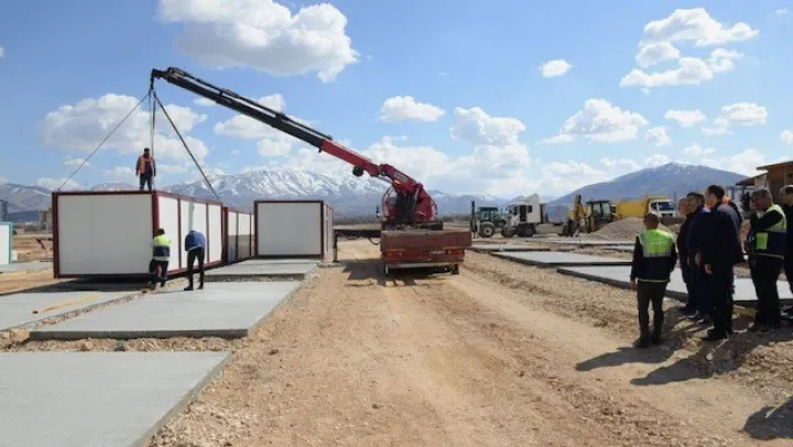 Yıldırım Belediyesi, kalıcı deprem konutlarından önce barınma ihtiyacını karşılamak için Malatya'nın Yeşilyurt ilçesinde 300 konteynerlik kent kuruyor.