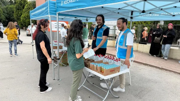 Kocaeli Büyükşehir Belediyesi, Yükseköğretim Kurumları Sınavı'na giren öğrenciler ve onların heyecanına ortak olan aileleri için farklı ilçe ve noktalarda ikramlar dağıtıyor.