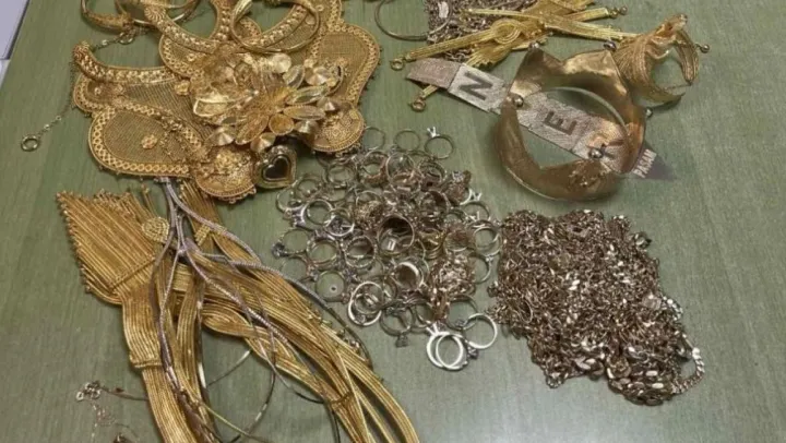 Zincir, bilezik, kolye, küpe, yüzük, madalyon, taç ve kravat iğnesi gibi çeşitli altın eşyaların toplam ağırlığının 1 kilo 241 gram olduğu, yaklaşık 115 bin Euro değerinde bulunduğu belirlendi.