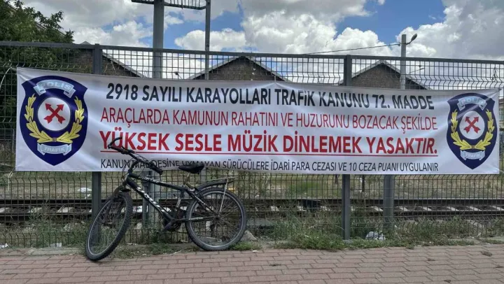 Tekirdağ'ın Muratlı ilçesinde araçlarında yüksek sesle müzik dinleyenler pankartla uyarıldı. Cezai yaptırımın uygulanacağına işaret edildi.