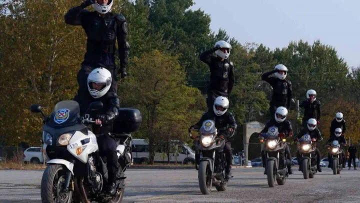 Edirne'de göreve yeni başlayan ve Motosikletli Yunus Timinde görev alacak eğitimini tamamlayan 12 personel, Sarayiçi'nde yaptığı gösterilerle nefes kesti.