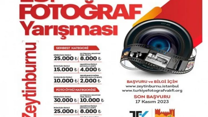 Zeytinburnu Belediyesi'nin en kıdemli yarışmalarından biri olan 'Fotoğraf Yarışması' bu yıl 13'üncü kez düzenleniyor. Yaklaşık 320 bin TL'lik para ödülünün dağıtılacağı '13. Fotoğraf Yarışması'nın konusu ise her zamanki gibi Zeytinburnu olacak. Zeytinburnu'nu en iyi anlatan karelerin kıyasıya mücadele edeceği yarışma, 'Serbest' ve 'Foto Öykü' olmak üzere iki farklı kategoriden oluşuyor. Serbest kategoride birinci olan esere 25 bin TL, ikinciye 15 bin TL, üçüncüye 10 bin TL para ödülü verilirken, 1 esere 8 bin TL'lik Zeytinburnu Belediyesi Özel Ödülü, 5 esere 4 bin TL'lik mansiyon ödülü ve 30 esere de 2 bin TL'lik Sergilenmeye Değer Eser ödülü dağıtılacak. Foto Öykü Kategorisinde ise; birinciye 30 bin TL, ikinciye 25 bin TL ve üçüncüye 15 bin TL para ödülünün yanı sıra 1 esere 10 bin TL'lik Zeytinburnu Belediyesi Özel Ödülü, 5 esere 8 bin TL'lik mansiyon ödülü ve 20 esere de 3 bin TL'lik Sergilenmeye Değer Eser ödülü verilecek.