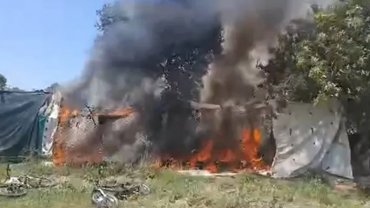 Kocaeli'nin Darıca ilçesinde 30 dönümlük zeytinlik alanda çıkan yangında çok sayıda ağaç küle döndü, kulübe ise kullanılamaz hale geldi.