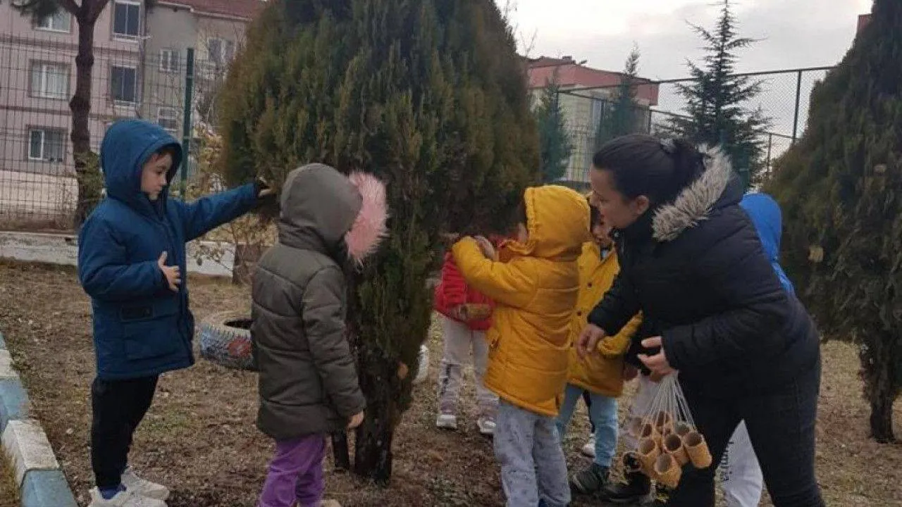 Anaokulu öğrencileri "Dostlarımız kışın aç kalmasın" adlı projeleri ile sokak hayvanlarının mama ve su ihtiyacını karşıladı.