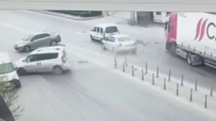 Bursa'da bir otomobil sürücüsü anayolda yavaşlayıp dönüş yapmaya çalıştı. Otomobilin durduğunu farkeden diğer araç sürücüleri frene basınca arkadan gelen tır duramayıp önündeki otomobillere çarptı. Kazaya sebep olan araç çizik bile almazken, 4 aracın karıştığı kaza anı ise güvenlik kamerasına saniye saniye yansıdı