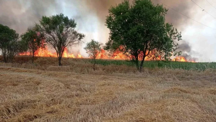 Edirne'de anız yangınının buğday tarlasına sıçramasıyla büyüyen alevler, buğday tarlasını ve araziyi küle çevirdi.
