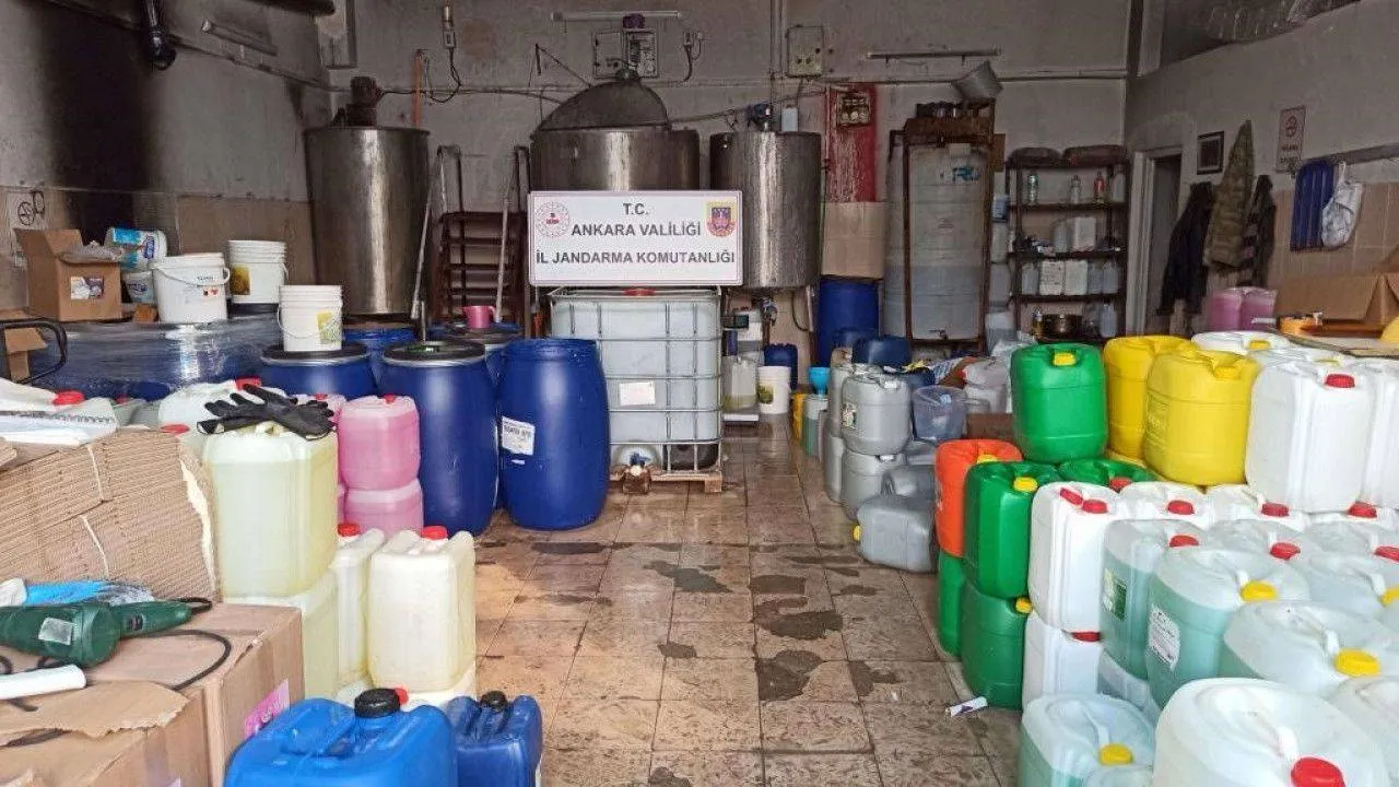 Ankara'da yasadışı yollarla üretilen temizlik malzemelerinin saklandığı depoya yapılan baskında 20 ton sahte deterjan ve 500 litre asit ele geçirildi.