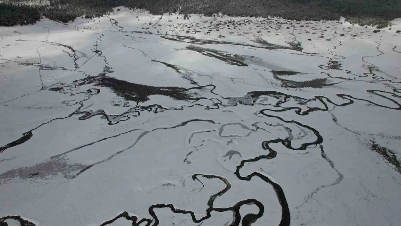 Ankara’nın Çamlıdere ilçesine bağlı Benli Yaylası kar yağışı sonrası bölgedeki nehirlerin oluşturduğu menderesler, havadan görüntülendi.