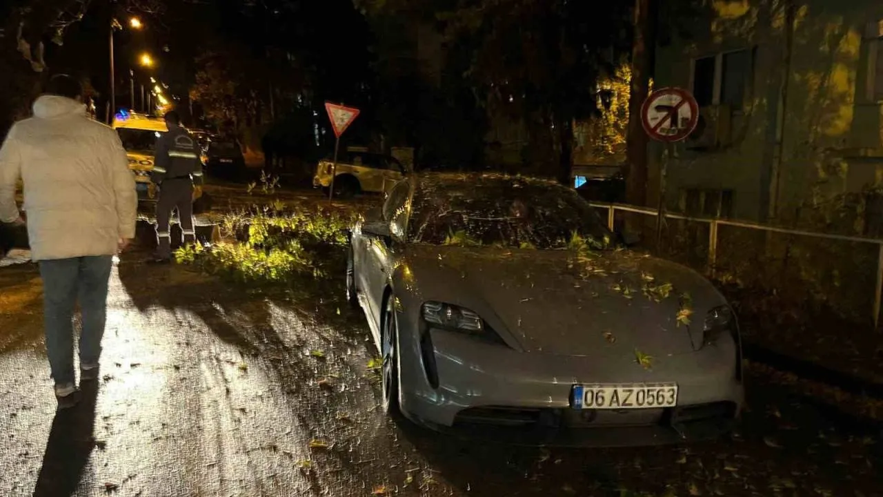 Edinilen bilgilere göre olay, saat 18.30 sıralarında meydana geldi. Şiddetli rüzgar nedeniyle Ayrancı mahallesi Tirebolu Sokak’ta bulunan bir ağacın büyük bir dalı yol kenarında park halinde bulunan 06 AZ 0563 plakalı Porsche marka lüks otomobilin üzerine düştü. Belediye ekipleri ağacı parçalayarak altında kalan ağacı çıkardı. Lüks otomobilde maddi hasar meydana geldi.