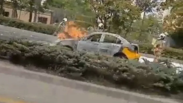 Olay, Çankaya ilçesi Mevlana Bulvarı üzerinde meydana geldi. Edinilen bilgilere göre, seyir halindeki takside bilinmeyen bir sebeple yangın meydana geldi. Kısa sürede büyüyen alevler aracı kullanılamaz hale getirdi. Araç sürücüsü alev topuna dönen taksiden kendi dışarı atarak saniyelerle kurtuldu. Alevleri gören vatandaşlar olay yerine itfaiye çağırdı. Ekipler yangını kısa sürede söndürmeyi başardı.