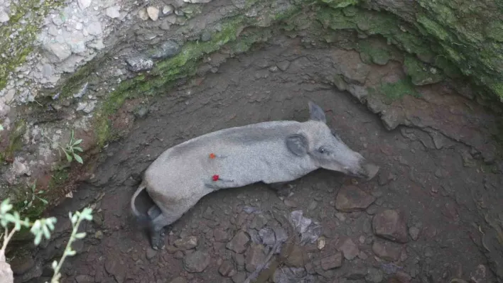 Anne domuz 5 saatlik operasyonla kuyudan çıkarıldı