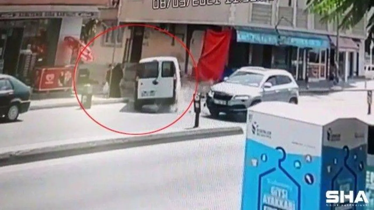 Esenler'de otomobil ile çarpışan ticari araç, savrularak yol kenarındaki yön levhasının bulunduğu direğe çarptı. Bu sırada kaldırımda yürüyen anne ile çocuğu, aracın direğe çarpması sonucu kurtuldu. Anne ile çocuğun inanılmaz kurtuluşu kameraya böyle yansıdı.